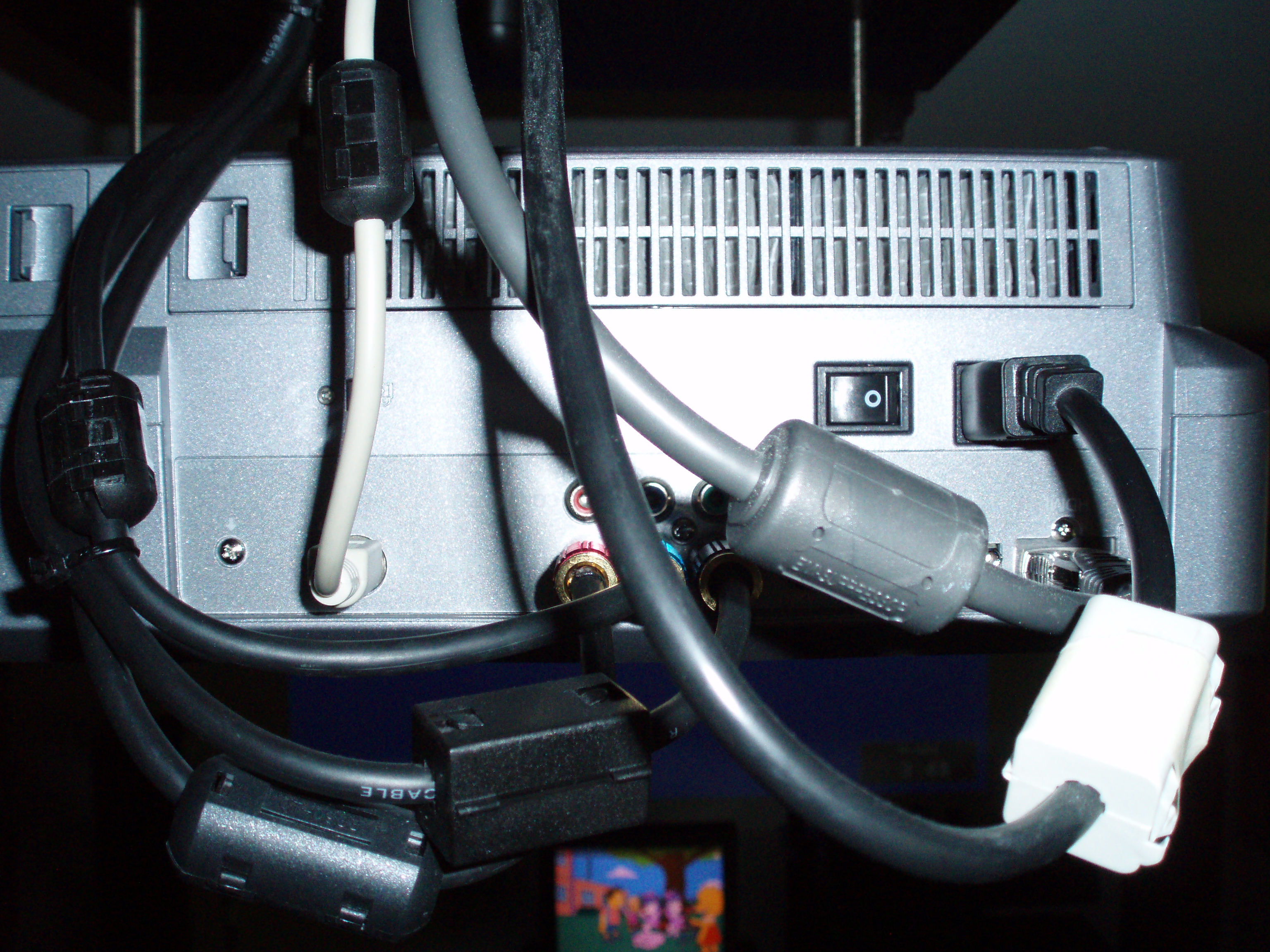 The connecting wires are: serial RS232 (white), YUV (3 x black), HDMI (grey), and power (black). There is also a wire to the IR emitting diodes (not seen on this picture).